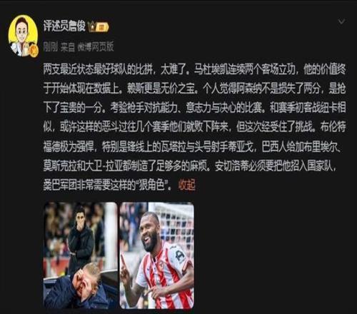 這是布倫特福德本賽季第9次通過定位球或界外球戰(zhàn)術(shù)得分,領(lǐng)跑英超。這不是偶然,是體系。 丟球后的阿森納“感到非常窒息”,賴斯坦承。補時階段馬丁內(nèi)利揮霍的單刀,只是槍手進攻效率低下的又一次例證。而布倫特福德在最后15分鐘至少還有兩次改寫比分的機會,蒂亞戈的近距離推射被拉亞用腳尖擋出,瓦塔拉的內(nèi)切低射稍稍偏出遠角。 相比之下薩卡幾乎是迷失的狀態(tài),這不是大家熟悉認可的阿森納7號明星。 是搶一分,不是丟了兩分 “個人覺得阿森納不是損失了兩分,是搶下了寶貴的一分?!痹u述員詹俊在賽后的點評引發(fā)了槍手擁躉的激烈爭論。不過他的論據(jù)是很清晰,比賽考驗槍手對抗能力、意志力與決心的比賽。和賽季初客戰(zhàn)紐卡相似,或許這樣的惡斗過往幾個賽季他們就敗下陣來,但這次經(jīng)受住了挑戰(zhàn)。