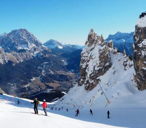 ▌科爾蒂納丹佩佐附近滑雪場 如果說“Canalone”黑道是勇者的戰(zhàn)場,那么五塔山全景雪道便是進(jìn)階玩家的詩與遠(yuǎn)方。五塔山因五座獨(dú)立的巖體而得名,這五座巖體如同巨人的手指,直指蒼穹,經(jīng)過千萬年的風(fēng)化侵蝕,形成了獨(dú)特的地質(zhì)景觀。全景雪道沿著山體緩緩延伸,坡度平緩適中,既適合提升滑雪技巧,又能讓人從容欣賞沿途的風(fēng)景。 滑行過程中,五塔山的巖體不斷變換角度,時(shí)而近在咫尺,仿佛伸手可觸,巖壁上的紋理清晰可見,呈現(xiàn)出深淺不一的褐色與灰色;時(shí)而又遠(yuǎn)在天際,與藍(lán)天白云、皚皚白雪構(gòu)成一幅濃墨重彩的油畫。