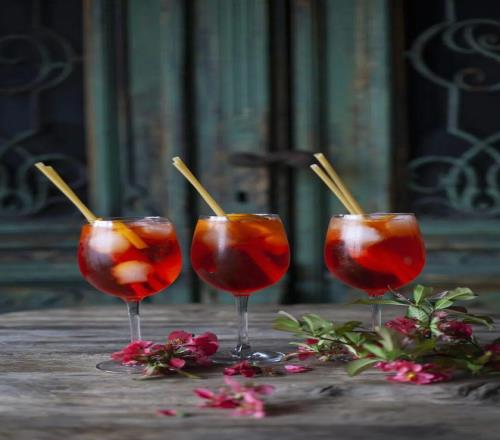 在科爾蒂納的木屋、酒吧、露臺,傍晚時(shí)分,人們總會點(diǎn)上一杯Aperol Spritz,這款由金酒、阿佩羅苦酒、普羅塞克起泡酒和蘇打水調(diào)制而成的雞尾酒,色澤橙黃,口感清爽,帶著淡淡的苦味與果香,配上咸香的火腿、酥脆的面包、新鮮的奶酪等aperitivo小食拼盤,既能緩解滑雪后的疲憊,又能開啟一場愉悅的社交之旅。