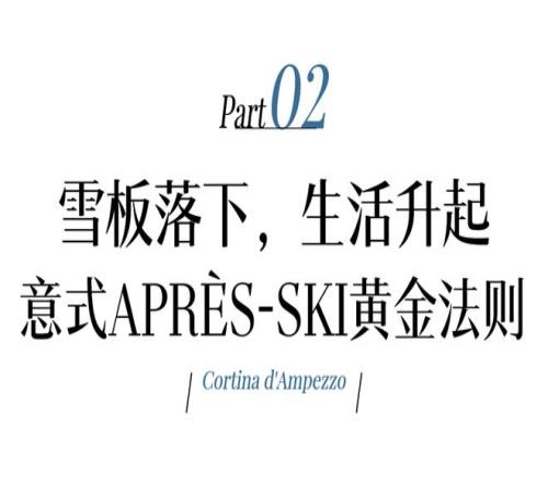 ▌藍(lán)調(diào)時(shí)刻下的科爾蒂納 雪板落地,科爾蒂納的生活才正要登場。 傍晚五點(diǎn)左右,整個(gè)小鎮(zhèn)進(jìn)入“黃金時(shí)刻”。夕陽為雪山披上一層金紅色的外衣,遠(yuǎn)處的山峰剪影如畫,巖壁的輪廓在光影中逐漸柔化,白天的鋒利感被緩慢收起?;┱哧懤m(xù)下山,小鎮(zhèn)的節(jié)奏隨之放慢,切換為社交沙龍模式。 aperitivo文化是科爾蒂納Aprés-ski的核心。aperitivo原本是意大利人餐前飲用的開胃酒,如今已演變成一種社交儀式。Aprés-ski源自法語,如今已成為歐洲雪山度假的標(biāo)志性文化,但在不同國家有著截然不同的風(fēng)格與氣質(zhì)。奧地利的Aprés-ski是啤酒廳的狂歡,施拉格音樂震天響,人們舉著啤酒杯肆意舞動,熱鬧非凡卻少了幾分優(yōu)雅;法國的Aprés-ski是時(shí)髦的代名詞,DJ打碟搭配香檳蹦迪,燈光閃爍間盡顯潮流氣息,卻總少了點(diǎn)人間煙火;而意大利科爾蒂納的Aprés-ski,將aperitivo文化、阿爾卑斯山珍與雪山露臺完美融合,在松弛與精致之間找到了絕佳平衡。