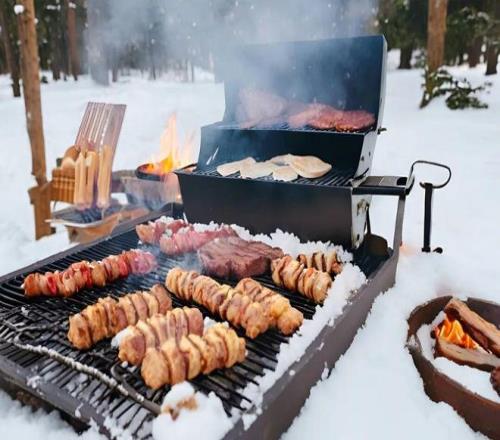 當(dāng)?shù)夭蛷d的招牌菜多是炭烤野豬肉,選用當(dāng)?shù)厣搅种械囊柏i肉,經(jīng)過腌制后用炭火慢烤,外皮焦脆,肉質(zhì)鮮嫩多汁,帶著淡淡的煙熏味,搭配特制的醬料和新鮮的蔬菜,口感豐富,回味無窮。再配上一杯特倫蒂諾紅酒,這款來自意大利北部產(chǎn)區(qū)的紅酒,酒體飽滿,單寧柔和,果香濃郁,與野豬肉的風(fēng)味完美契合坐在露臺的長椅上,眼前是五塔山的絕美全景,雪花偶爾落在肩頭,耳邊是木屋傳來的歡聲笑語,那種人與自然融為一體的愜意,讓人忘卻了時(shí)間的流逝。