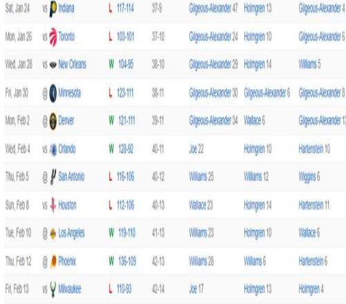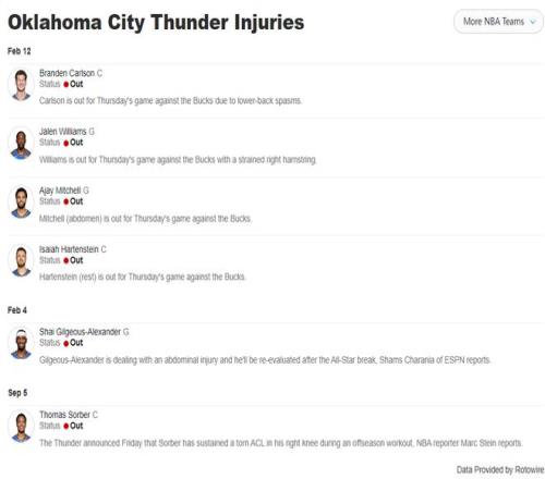 亞歷山大自2月5日起就因?yàn)楦共坷瓊毕?,他的傷勢也是在全明星周末后才?fù)查,他肯定讓自己這個(gè)賽季至少出席65場比賽,因?yàn)樗€想連莊MVP,但也有再度受傷的風(fēng)險(xiǎn),這是一個(gè)巨大的隱患。 |