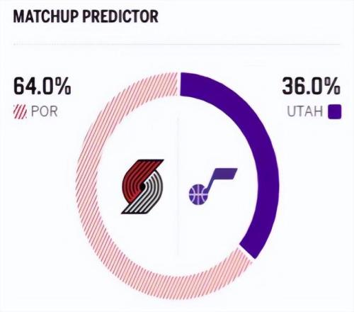 這是兩隊本賽季的第三次交鋒,前兩次交鋒開拓者兩戰(zhàn)全勝,第一次136-134打?qū)?,第二?37-117血洗 。賽前,美媒ESPN對本場比賽進(jìn)行了勝率預(yù)測,開拓者的勝率高達(dá)65.3%,優(yōu)勢明顯,爵士隊的勝率則僅有34.7% 。