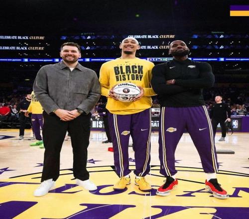 湖人3位球員賽前領(lǐng)取全明星專屬花球,其中東契奇與詹姆斯參加全明星正賽,海斯參加扣籃大賽。