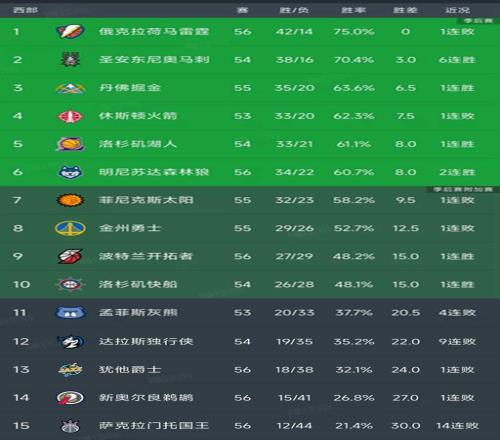 北京時(shí)間2月13日,今日的NBA常規(guī)賽結(jié)束了所有比賽,我們看看西部的最新排名!