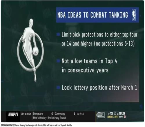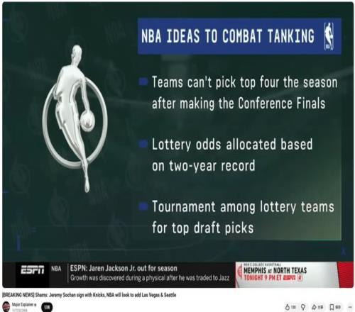 聯(lián)盟正制定反擺爛策略 總裁蕭華也在公開發(fā)聲中明確表示這樣的行為損害了比賽完整性,嚴(yán)重動搖了NBA競技根基,同時透露聯(lián)盟正在制定一系列整治此類行為的強(qiáng)化方案。 名記Shams在節(jié)目中也談及這一點,表示球隊老板、聯(lián)盟高管、球隊管理層和球員工會已經(jīng)進(jìn)行數(shù)輪磋商。 最初的三個想法是:限制選秀權(quán)保護(hù)條款、禁止球隊連續(xù)兩年獲得前四順位、3月1日后鎖定樂透區(qū)排名。