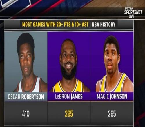 詹姆斯41歲轟三雙創(chuàng)5大神跡:歷史第一人+湖人隊史第二比肩魔術(shù)師