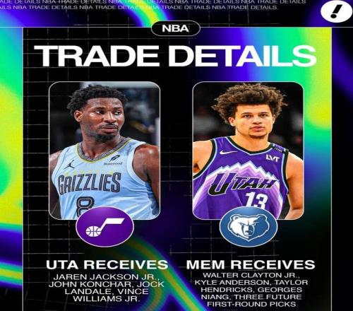 此前截止日前,爵士與灰熊達成一筆交易,具體細節(jié): ——爵士送出李凱爾、克萊頓、亨德里克斯、尼昂、3個首輪簽 ——灰熊送出小賈倫杰克遜、蘭代爾、康查爾、小文斯威廉姆斯 這3個首輪簽分別是2027年首輪(騎士/森林狼/爵士中順位最高的)、2027年的湖人首輪、2031年的太陽首輪,價值可不小,絕對比濃眉交易中奇才送出的2個首輪簽價值更高(2026年的雷霆首輪、勇士2030年的前20順位保護首輪)。