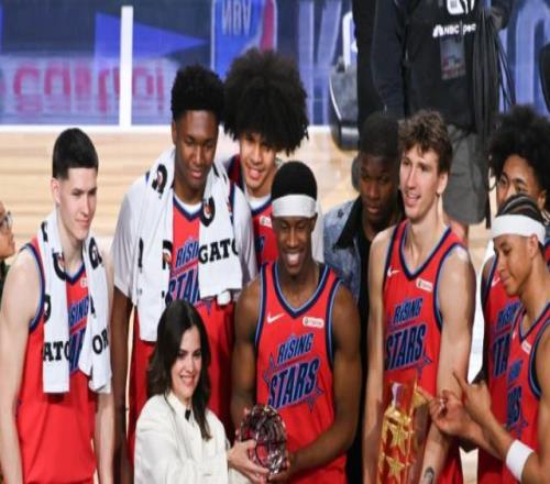 體壇周報(bào)特約記者吳胤臻洛杉磯報(bào)道 在2026年NBA全明星周末揭幕戰(zhàn)——新秀挑戰(zhàn)賽中,聯(lián)盟年輕球員上演了一場(chǎng)緊張激烈的迷你錦標(biāo)賽。最終,由文斯?卡特執(zhí)教的卡特隊(duì)在決賽中以25比24險(xiǎn)勝卡梅羅?安東尼執(zhí)教的安東尼隊(duì),成功奪冠,而費(fèi)城76人新秀維杰?埃奇庫姆憑借關(guān)鍵表現(xiàn)榮膺賽事最有價(jià)值球員。 本屆新秀挑戰(zhàn)賽繼續(xù)采用迷你錦標(biāo)賽賽制,共四支球隊(duì)參賽。半決賽中,安東尼隊(duì)以40比34擊敗G聯(lián)盟組成的里弗斯隊(duì)率先晉級(jí);隨后卡特隊(duì)以41比36戰(zhàn)勝麥迪隊(duì),兩隊(duì)會(huì)師決賽。