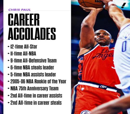 最后,不妨再回顧下保羅的生涯。 職業(yè)生涯21年,保羅可以說(shuō)榮譽(yù)滿身,包括: ——12次全明星 ——11次最佳陣容(4次一陣、5次二陣、2次三陣) ——9次最佳防守陣容(7次一防,2次二防) ——6次搶斷王 ——5次助攻王 ——2005-06賽季的最佳新秀 ——NBA75大巨星 ——總助攻歷史第二 ——總搶斷歷史第二