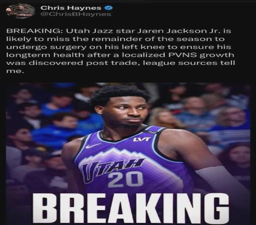 “3J”小賈倫-杰克遜將接受手術(shù),切除左膝一處局部色素沉著絨毛結(jié)節(jié)性滑膜炎增生組織,可能賽季報(bào)銷......