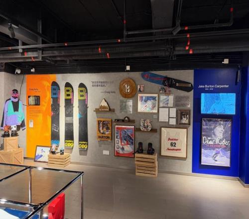 在滑雪圈內(nèi)被視為“單板大神”的比利白,與冰雪結(jié)緣同樣與冬奧有關(guān)。2012年,他在法國留學(xué),所在城市格勒諾布爾正是1968年冬奧會舉辦地。在阿爾卑斯山腳下,滑雪幾乎是當(dāng)?shù)刈钇毡榈男蓍e方式。正是在這樣的環(huán)境中,他開始系統(tǒng)接觸滑雪。 Boardroom目前引入了JONES、BURTON、NITRO、IFUBUKI以及國產(chǎn)護(hù)具品牌Arkus等十余個(gè)滑雪相關(guān)品牌。相比傳統(tǒng)運(yùn)動零售門店,其更強(qiáng)調(diào)文化展示與社群運(yùn)營,二層還設(shè)有丹麥滑雪歷史展區(qū)。