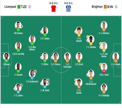 【出場陣容】 利物浦首發(fā):1-阿利松、4-范戴克、5-科納特、6-凱爾凱茲、7-維爾茨(72’2-戈麥斯)、8-索博斯洛伊、10-麥卡利斯特、11-薩拉赫(72’73-恩古莫哈)、14-基耶薩(72’22-?;倏耍?、17-瓊斯(89’42-尼奧尼)、18-加克波(89’47-卡爾文·拉姆塞)。 利物浦替補:25-馬馬爾達什維利、26-羅伯遜、38-赫拉芬貝赫、基利安·莫里森。 布萊頓首發(fā):23-斯蒂爾、5-鄧克、6-范赫克(72’21-博斯卡利)、24-卡迪奧盧、34-維爾特曼、53-霍維爾(65’10-魯特爾)、13-辛謝爾伍德(81’27-韋弗)、17-巴萊巴(65’11-明特)、25-迭戈·戈麥斯(65’22-三笘薰)、30-格羅斯、19-科斯托拉斯。 布萊頓替補:1-維爾布魯根、29-德屈佩、20-米爾納、18-維爾貝克。 |
