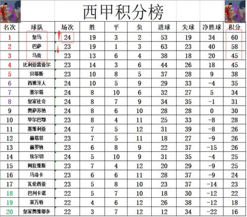 西甲最新積分戰(zhàn)報維尼修斯雙響進前十皇馬8連勝超巴薩登頂