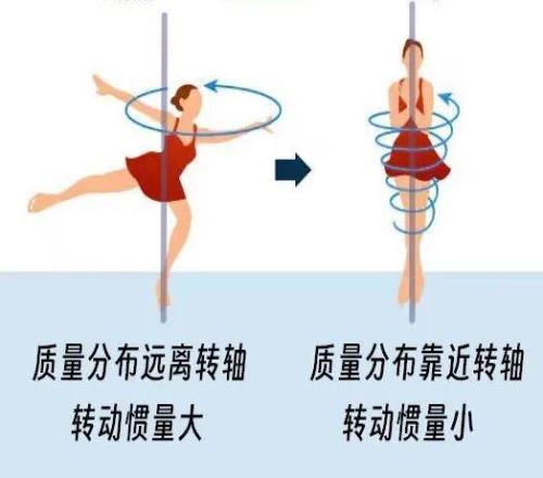 本屆奧運(yùn)會花滑比賽直觀地呈現(xiàn)了起跳高度和滯空時間(左下角) 增加滯空時間對完成動作有利,但運(yùn)動員顯然不能把所有力氣都用來向上跳。在獲得垂直速度的同時,運(yùn)動員還必須扭轉(zhuǎn)身體和四肢,在蹬冰時獲得旋轉(zhuǎn)的動力。在這個過程中,運(yùn)動員會獲得一定大小的角動量。這個物理量決定了空中旋轉(zhuǎn)的潛力:角動量越大,高速旋轉(zhuǎn)就越容易實(shí)現(xiàn)。 在起跳階段,運(yùn)動員必須讓向上跳躍和旋轉(zhuǎn)跳躍的力度取得最佳的平衡。 騰空:收緊身體決定成敗 一旦騰空而起,運(yùn)動員就無法再借助外力增加角動量,此時他們處于角動量守恒的狀態(tài)。不過,在空中他們還能繼續(xù)增加旋轉(zhuǎn)速度,這是靠改變身體姿態(tài)實(shí)現(xiàn)的。 在快速旋轉(zhuǎn)時,運(yùn)動員總是會把手臂和雙腿向內(nèi)收緊,這是為了減少轉(zhuǎn)動慣量。轉(zhuǎn)動慣量是一個描述物體旋轉(zhuǎn)慣性大小的物理量,它由物體的質(zhì)量和質(zhì)量的分布方式?jīng)Q定。 在收緊四肢時,運(yùn)動員的各部分質(zhì)量都很靠近旋轉(zhuǎn)軸,此時轉(zhuǎn)動慣量就會減??;如果向外舒展肢體,四肢質(zhì)量分布在遠(yuǎn)離旋轉(zhuǎn)軸的地方,轉(zhuǎn)動慣量就會變大。
