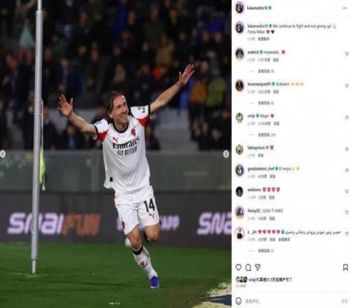 米蘭圈 在本輪意甲,米蘭2-1擊敗比薩。本場(chǎng)比賽40歲莫德里奇打進(jìn)絕殺,賽后也當(dāng)選全場(chǎng)最佳球員。莫德里奇在社媒曬出慶祝照片,配文寫道:“我們會(huì)繼續(xù)戰(zhàn)斗下去,永不放棄!米蘭加油!”