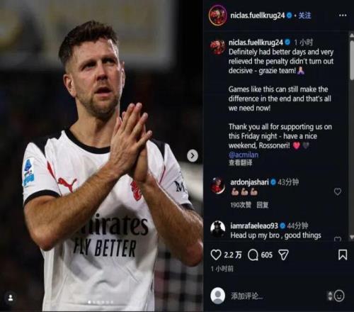 米蘭圈 意甲第25輪,米蘭客場(chǎng)2-1擊敗比薩,米蘭前鋒菲爾克魯格此役替補(bǔ)登場(chǎng),在比賽中罰丟了一粒點(diǎn)球。 賽后菲爾克魯格更新社媒,談到了自己的想法,并感謝了球迷的支持。 菲爾克魯格:“顯然今天并非最好的一天,慶幸那個(gè)點(diǎn)球沒有成為比賽的決定性因素,感謝球隊(duì)!在這樣的比賽最后關(guān)頭仍能夠去改變局面,這正是我們現(xiàn)在所需要的!感謝大家在周五晚上帶來的支持,祝球迷們有一個(gè)愉快的周末!??”