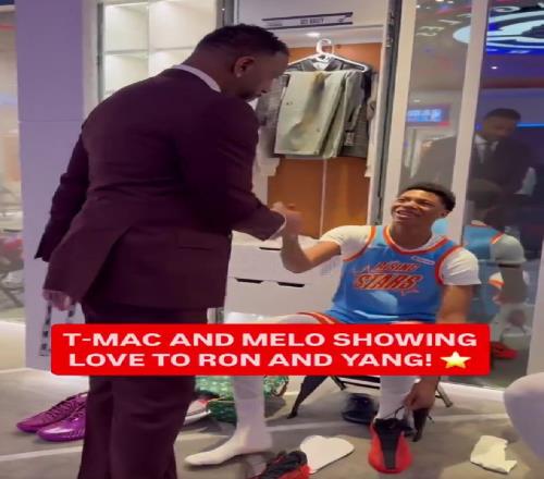 2月17日消息,2月14日,NBA全明星新秀賽半決賽,安東尼隊(duì)40-34擊敗里弗斯隊(duì)。比賽開(kāi)始之前,麥迪和安東尼來(lái)到了新秀賽更衣室跟楊瀚森等新秀打招呼,讓小楊有些受寵若驚!