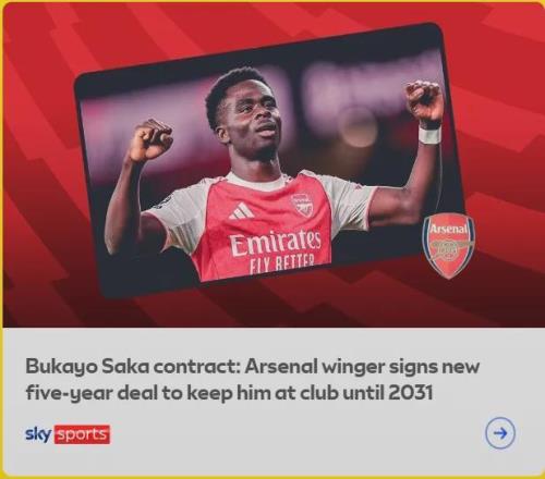 BBC記者SM消息,薩卡和阿森納簽下了一份2031年到期的5年合同,而續(xù)約后薩卡將成為阿森納隊內(nèi)頂薪球員(沒寫之一),周薪在30萬英鎊以上(in excess of £300,000 a week)。