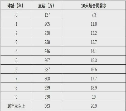 10天合同能拿多少錢?NBA一個(gè)賽季是174天,10天合同的薪水就是NBA底薪除以174,再乘以10。由于球員在NBA效力年限不同,底薪合同以及10天合同的金額也不一樣。普拉姆利已經(jīng)打了13個(gè)賽季,10天合同能拿到20.9萬美元。