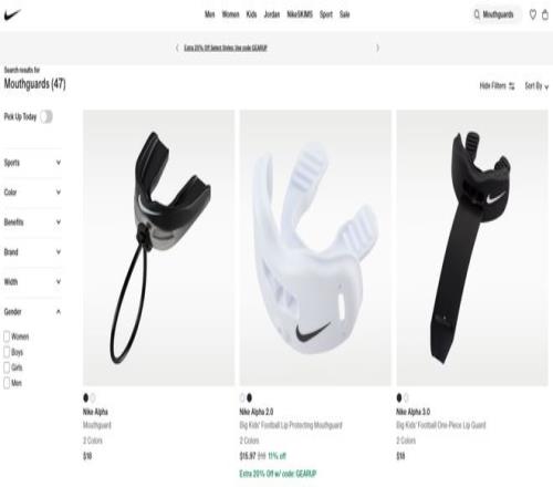 護(hù)齒器掛繩方便運(yùn)動(dòng)員取用、防丟。| 圖源:視覺中國 幾大品牌在運(yùn)動(dòng)護(hù)齒上發(fā)力 隨著極限運(yùn)動(dòng)、對抗性運(yùn)動(dòng)的普及,以及大眾運(yùn)動(dòng)安全意識(shí)的提升,運(yùn)動(dòng)防護(hù)牙套已從專業(yè)運(yùn)動(dòng)員專屬逐漸向大眾滲透。 目前,專業(yè)級護(hù)齒套代表有國際專業(yè)品牌Shock Doctor、OPRO、SISU等等;在大眾運(yùn)動(dòng)賽道,也有大眾熟知的品牌Nike、迪卡儂等布局。 從各家官網(wǎng)看,成品護(hù)齒器的價(jià)格并不昂貴,定價(jià)均在100元至300元之間。甚至,在迪卡儂39.9元就能買到基礎(chǔ)款。