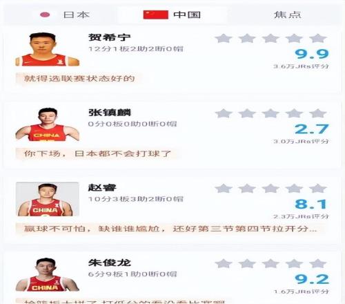 中國(guó)男籃完勝日本,球員評(píng)分出爐:三人堪稱完美,張鎮(zhèn)麟2.7分