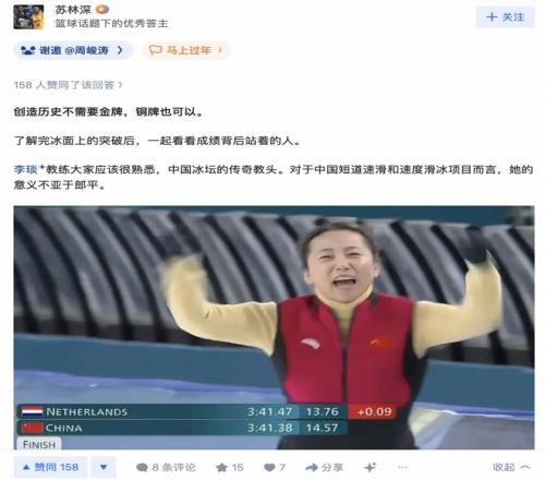 不止于金牌,知乎呈現(xiàn)多元冬奧會(huì) 大年初一,米蘭速滑館里上演驚險(xiǎn)一幕:中國隊(duì)以0.09秒的微弱優(yōu)勢力克荷蘭隊(duì),奪得銅牌。這是自2006年都靈冬奧會(huì)設(shè)立團(tuán)體追逐項(xiàng)目以來,中國隊(duì)在冬奧會(huì)該項(xiàng)目比賽中取得的最佳戰(zhàn)績,也是中國速度滑冰隊(duì)在本屆冬奧會(huì)上獲得的第二枚獎(jiǎng)牌。 當(dāng)普通觀眾只是驚嘆于0.09秒的險(xiǎn)勝時(shí),知乎答主們卻將鏡頭對準(zhǔn)了背后的功勛教練,以及這個(gè)銅牌所代表的真正意義。