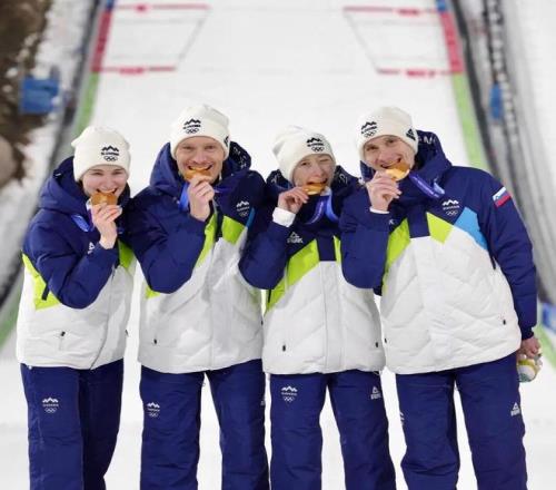 跳臺(tái)滑雪團(tuán)體斯洛文尼亞代表團(tuán)衛(wèi)冕冠軍 普雷夫茨兄妹同臺(tái)領(lǐng)取金牌創(chuàng)造冬奧奇跡 跳臺(tái)滑雪賽場(chǎng),斯洛文尼亞的普雷夫茨家族再次成為焦點(diǎn)。哥哥彼得曾在索契摘銀奪銅,如今弟弟多門與妹妹妮卡將家族榮耀推向新高度:多門斬獲個(gè)人大跳臺(tái)金牌,并與妹妹聯(lián)手衛(wèi)冕混合團(tuán)體冠軍,妮卡則一人獨(dú)攬個(gè)人標(biāo)準(zhǔn)臺(tái)銀牌和個(gè)人大跳臺(tái)銅牌,實(shí)現(xiàn)單屆冬奧集齊金銀銅的壯舉。這個(gè)來(lái)自克拉尼的體育世家,自2012年與匹克結(jié)緣以來(lái),幾乎每一次登上領(lǐng)獎(jiǎng)臺(tái),身后都有那個(gè)紅色三角標(biāo)志的默默陪伴。