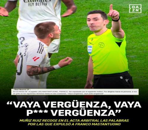 根據(jù)裁判的賽后報告,他對兩三米外的主裁判穆尼斯·魯伊斯罵了“真是恥辱,真XX的恥辱!”據(jù)西班牙足協(xié)紀(jì)律守則第124條規(guī)定:“以蔑視或不尊重的態(tài)度或言語對待裁判,只要該行為不構(gòu)成更嚴(yán)重的違規(guī)行為,將被處以停賽2至3場或長達(dá)1個月的處罰?!?馬斯坦托諾的情節(jié)很可能只會停賽2場,錯過3月6日作客塞爾塔和3月14日主場對埃爾切的比賽。