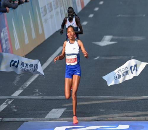 2026年3月15日,上海東方體育中心,女子組的第一名則花落來自埃塞俄比亞的阿斯馬雷奇·安利,成績是1:07:01。澎湃新聞記者 朱偉輝 圖