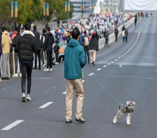 2026年3月15日,上海,一位觀眾牽著小狗前來觀看比賽。澎湃新聞記者 朱偉輝 圖 自創(chuàng)辦以來,上海半馬始終秉持“永不止步”的賽事精神,嚴(yán)格對標(biāo)世界田聯(lián)白金標(biāo)賽事標(biāo)準(zhǔn)體系,每一屆均從賽事組織、跑者體驗、環(huán)節(jié)設(shè)置到服務(wù)細(xì)節(jié)全面打磨,不斷推動各項服務(wù)的精細(xì)化升級。在此基礎(chǔ)上,上海半馬已構(gòu)建起一套覆蓋賽前籌備、賽中執(zhí)行與賽后服務(wù)的全流程專業(yè)質(zhì)量管控機(jī)制,致力于為每一位跑者提供無縫銜接、安心無憂的參賽體驗。