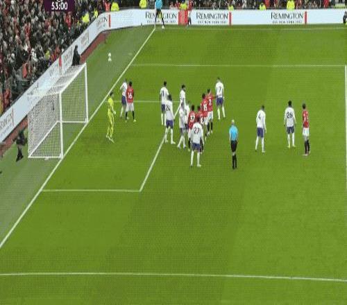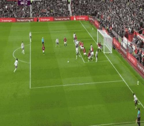 第53分鐘,馬丁內(nèi)斯撲出姆伯莫的射門,曼聯(lián)獲得角球,B費主罰,卡塞米羅前點頭球攻門,打破僵局。