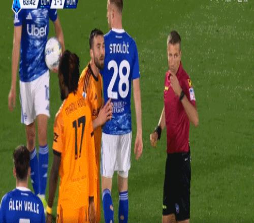 比賽剛開(kāi)始,羅馬就展現(xiàn)出強(qiáng)烈的求勝欲望反客為主。第5分鐘,沙拉維在禁區(qū)內(nèi)積極逼搶制造混亂,被對(duì)方后衛(wèi)拉蒙放倒,主裁判果斷判罰點(diǎn)球。馬倫穩(wěn)穩(wěn)主罰命中,羅馬1-0領(lǐng)先,取得夢(mèng)幻開(kāi)局。 領(lǐng)先后的羅馬一度掌控比賽節(jié)奏,科莫雖然不斷嘗試組織進(jìn)攻,但始終沒(méi)有找到太好的機(jī)會(huì)。無(wú)奈只能接受0-1進(jìn)入中場(chǎng)休息。