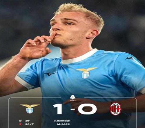 第26分鐘,拉齊奧利用一次快速反擊打破僵局。主隊(duì)后場(chǎng)長(zhǎng)傳發(fā)動(dòng)進(jìn)攻,伊薩克森在與米蘭后衛(wèi)的身體對(duì)抗中占據(jù)優(yōu)勢(shì),隨后面對(duì)門將邁尼昂冷靜小角度推射破門,拉齊奧取得1-0領(lǐng)先,這也是全場(chǎng)唯一進(jìn)球。
