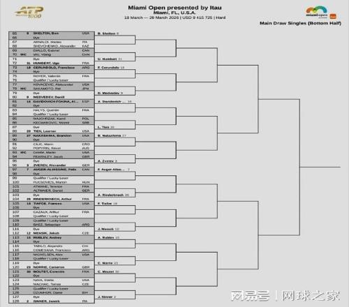 我們再來關注ATP/WTA1000邁阿密站的最新消息。北京時間昨晚,ATP1000邁阿密大師賽公布了單打正賽簽表。捷克新星門??艘孕l(wèi)冕冠軍身份出戰(zhàn),世界前十當中除了德約科維奇因傷退賽之外,其他人悉數(shù)參賽。