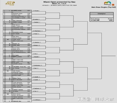 前八大種子對位:上半?yún)^(qū),阿爾卡拉斯--弗里茨、穆塞蒂--德米納爾;下半?yún)^(qū),謝爾頓--茲維列夫、阿利亞西姆--辛納。中國一哥吳易昺首輪對陣加拿大球員迪亞洛,第二輪對位31號種子、法國名將恩貝爾;張之臻首輪對陣法國左手將馬納里諾,第二輪對位22號種子、美國名將湯米保羅。兩人的簽運都不太好,次輪對手的實力都很強,過關難度不小。