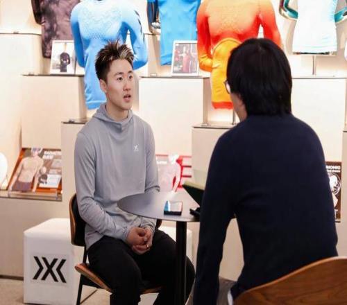 這次對話中,31歲的王心迪向懶熊體育回憶了半個(gè)月前那個(gè)決定性的瞬間,分享了與徐夢桃之間印象最深的一次對話,也講述了這4年是哪些人和事幫他支撐過來。他不喜歡渲染運(yùn)動(dòng)員有多苦,也“不care”外界貼給他的標(biāo)簽,表示最近最想做的事是學(xué)學(xué)廚藝。他珍視國旗在賽場為他的冠軍升起的瞬間,那讓他更加堅(jiān)信“我的存在是為了實(shí)現(xiàn)自身價(jià)值”。 他感謝了他的妻子、團(tuán)隊(duì),當(dāng)然也感謝了X-BIONIC——這不僅是過去4年唯一全程陪伴的贊助商,同時(shí)也是與他每日肌膚緊貼的比賽裝備,他說來到這里“就真像回家一樣”,最開始合作時(shí)他并非冠軍,但雙方都選擇“給彼此一個(gè)機(jī)會(huì),讓彼此能變得更好”。 作為X-BIONIC品牌在中國的實(shí)際擁有者和運(yùn)營者的三夫戶外公司的創(chuàng)始人和董事長,張恒在現(xiàn)場表現(xiàn)得相當(dāng)開心。王心迪也是X-BIONIC在中國唯一贊助的冬季項(xiàng)目運(yùn)動(dòng)員。他說金牌確實(shí)并不在最初的計(jì)劃范圍內(nèi),但這也讓雙方的相處保持得“很輕松”。 奪冠后社交媒體上廣泛傳播的王心迪穿著X-BIONIC護(hù)臉長嘯慶祝的畫面,也讓王心迪、X-BIONIC的這次合作迎來了最美好的時(shí)刻之一。
