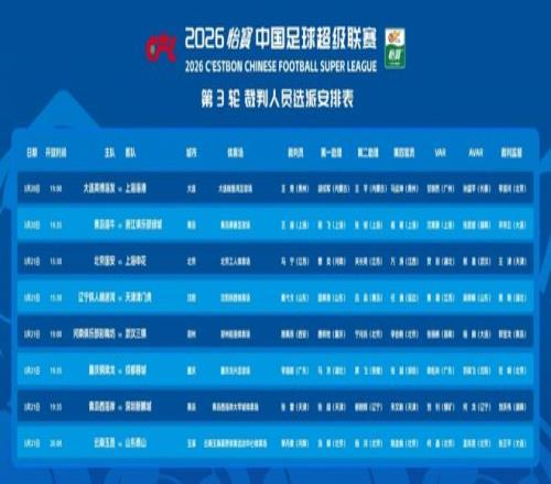 此外,李海新則成為“成渝”德比的主裁,他將執(zhí)法重慶銅梁龍主場與成都蓉城的“榜首大戰(zhàn)”。值得注意的是,另外兩大名哨麥麥提江和唐順齊,則無緣本輪中超執(zhí)法,疑似遭到了足協(xié)內(nèi)部“禁哨”的處罰。