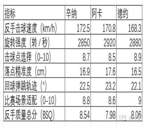 3.反手戰(zhàn)術(shù)分布指標(biāo) 通過(guò)以上三大類指標(biāo),我們?cè)贏I的輔助下可以分析出三位球員的反手特點(diǎn)。 (1)質(zhì)量維度:辛納BSQ 總分最高,速度、旋轉(zhuǎn)、落點(diǎn)均衡,是其招牌武器;德約擊球點(diǎn)、精準(zhǔn)度、場(chǎng)景適配最佳,穩(wěn)定性頂級(jí);阿卡旋轉(zhuǎn)、彈跳突出,暴力屬性強(qiáng)但穩(wěn)定性略遜。 (2)效率維度:辛納反手得分率領(lǐng)先,攻防轉(zhuǎn)換流暢;德約關(guān)鍵分反手得分率最高,抗壓能力最強(qiáng);阿卡反手制勝分率最高,終結(jié)能力突出。 (3)戰(zhàn)術(shù)維度:阿卡深區(qū)、上旋占比最高,進(jìn)攻侵略性最強(qiáng);德約熵值最高,戰(zhàn)術(shù)變化最多,難以預(yù)判;辛納落點(diǎn)與旋轉(zhuǎn)控制精準(zhǔn),戰(zhàn)術(shù)選擇均衡。(來(lái)源:網(wǎng)球之家 作者:云卷云舒) |