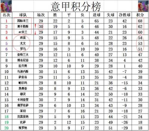 積分榜方面,國(guó)米繼續(xù)穩(wěn)穩(wěn)領(lǐng)跑,那不勒斯連續(xù)4輪一球小勝奪4連勝,先賽的他們暫時(shí)超過AC米蘭2分升至第2。爭(zhēng)四很激烈,黑馬科莫1分優(yōu)勢(shì)力壓尤文守住第4,羅馬3分之差排在第6。