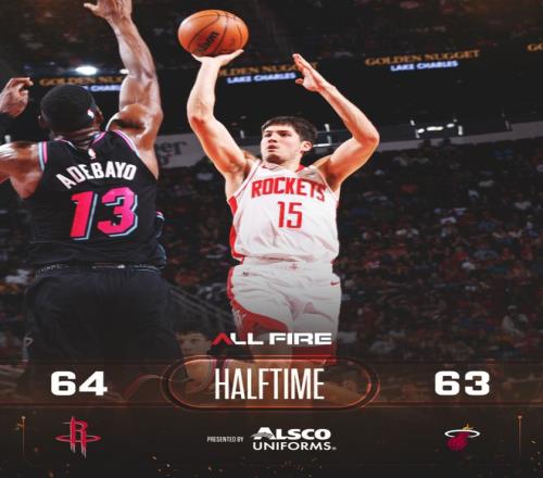 火箭隊(duì)的杜蘭特得到27分,他生涯總得分超越喬丹升至歷史第5。湯普森得到24分、18個(gè)籃板和4次助攻,謝潑德得到23分和14次助攻,申京得到19分和12個(gè)籃板,史密斯得到13分、4個(gè)籃板和4次助攻。熱火隊(duì)的阿德巴約得到32分、21個(gè)籃板和4次助攻,希羅得到25分和6個(gè)籃板,馮特奇奧得到21分,拉爾森得到19分和5個(gè)籃板,米切爾得到15分和9次助攻。