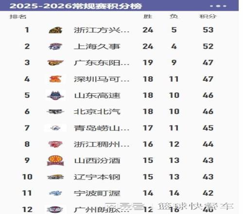 CBA積分榜最新排名出爐!廣廈第1遼籃第10:廣東第3恐保不住了