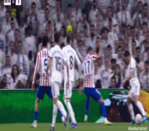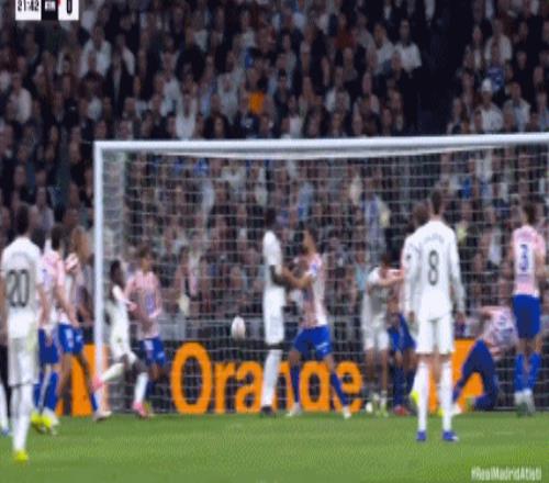 第41分鐘,卡瓦哈爾斜傳,楚阿梅尼甩頭攻門(mén)頂偏