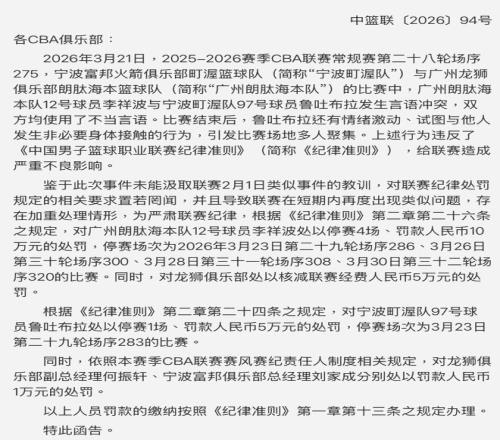 CBA重罰!李祥波因不當(dāng)言論被禁賽4場(chǎng),魯吐布拉情緒激動(dòng)被禁1場(chǎng)