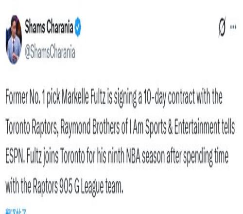 北京時(shí)間3月24日,據(jù)名記Shams報(bào)道,2017年NBA選秀狀元富爾茨將與猛龍簽一份10天短合同。