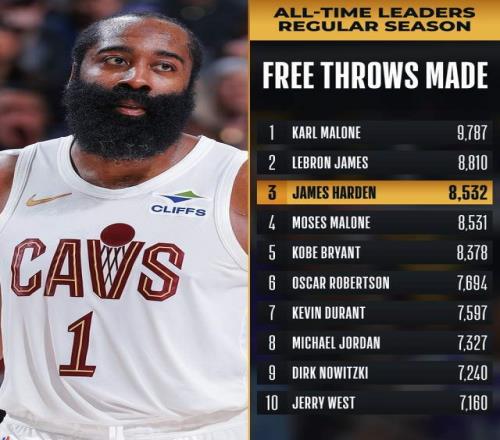 騎士對陣籃網(wǎng)的比賽,哈登缺席2場之后迎來復(fù)出,他在下半場也是找回狀態(tài),全場拿到22分9籃板8助攻,幫助球隊有驚無險贏下比賽,終結(jié)了2連敗的頹勢。而在這場比賽哈登也是迎來里程碑,生涯總罰球命中數(shù)來到8535個,超越摩西·馬龍(8531個)升至歷史第3,接下來將追趕排在第2的詹姆斯(8810個)。