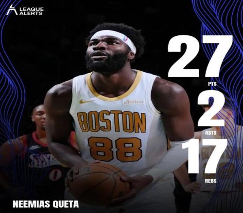 這場(chǎng)比賽,凱爾特人的中鋒內(nèi)米亞斯克塔打出了生涯最強(qiáng)的一場(chǎng)比賽:全場(chǎng)出戰(zhàn)27分鐘,投籃14中10,罰球10中7,拿下27分17籃板2助攻3蓋帽,正負(fù)值+20。