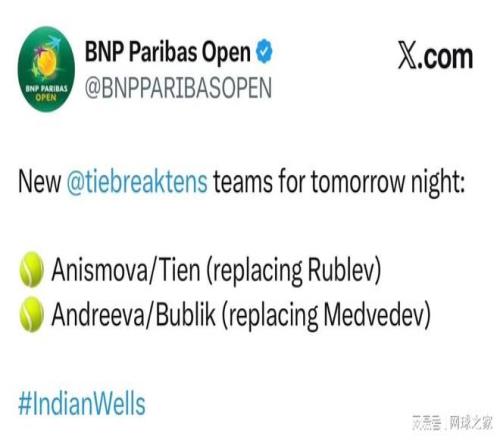 此前《馬卡報(bào)》報(bào)道包括梅德韋杰夫和盧布列夫在內(nèi)的41名參加迪拜500賽球員、賽事工作人員等人被困一事后,很快傳來這對(duì)哥倆準(zhǔn)備單獨(dú)乘車抵達(dá)阿曼,然后再包私人飛機(jī)前往印第安維爾斯參賽的消息,時(shí)間在3月3日。 就在外界一直在等待梅德韋杰夫和盧布列夫是否已經(jīng)順利離開迪拜的最新消息時(shí),印第安維爾斯官方的另一則新消息卻提前來了,直接官宣取消了這對(duì)哥倆的混雙搶十表演賽資格,由勒納錢和布勃利克替代。