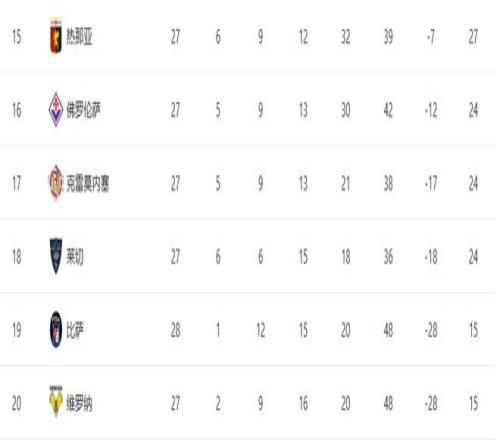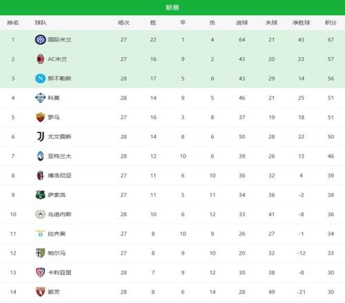 隨著大黑馬21險(xiǎn)勝+尤文40爆發(fā)!意甲最新積分榜:46名差1分