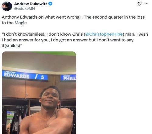 從個(gè)人能力方面來說,愛德華茲正在邁入聯(lián)盟頂級(jí)球員行列,但從領(lǐng)導(dǎo)力角度衡量,愛德華茲還有很長(zhǎng)的路要走。 作為球隊(duì)核心,賽后談到球隊(duì)第二節(jié)為何突然進(jìn)攻斷電時(shí),愛德華茲笑著說自己不知道,然后話鋒一轉(zhuǎn)表示:“我其實(shí)是有答案的,但是我不能告訴你。”